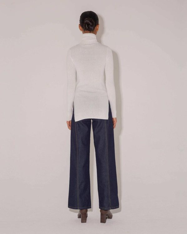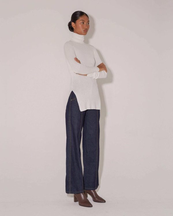 The figure hugging Beatrix Turtleneck is crafted from a luxurious Cotton Silk with a subtle rib detail throughout. The garment is designed to have a split detail on either side and pairs perfectly with Magali Pascal bottoms for a sophisticated look.