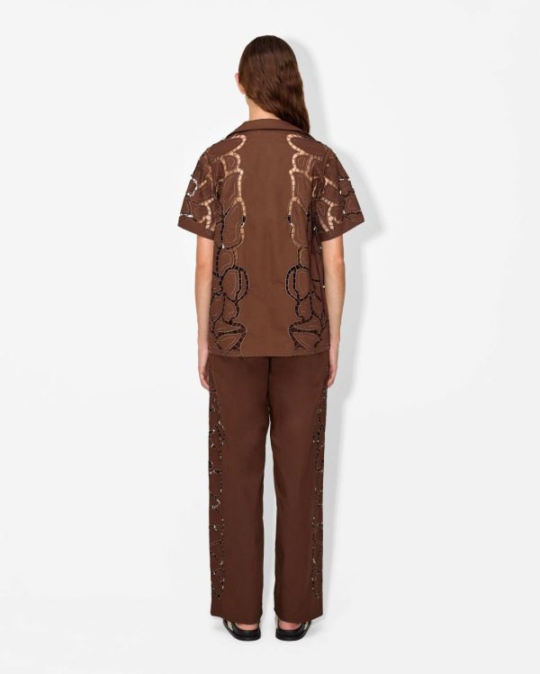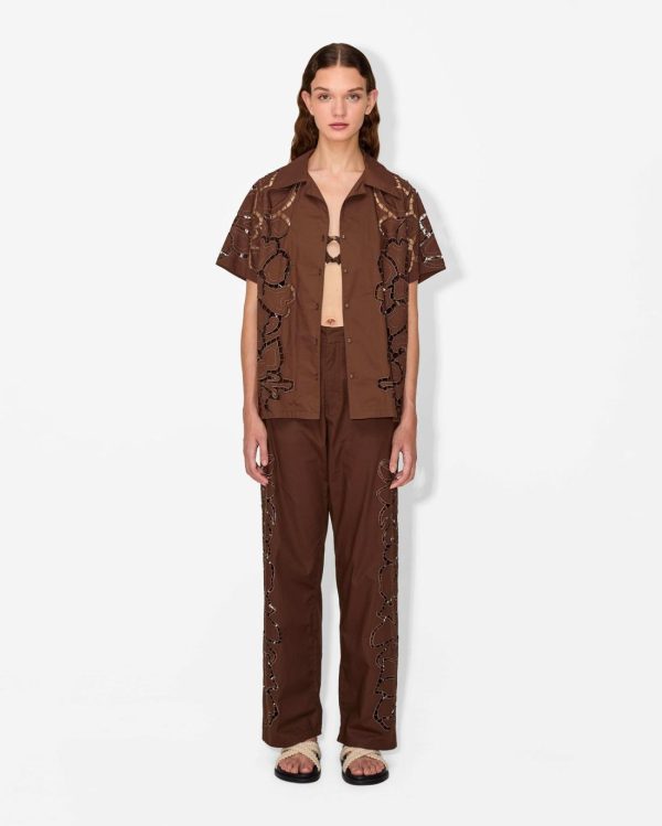 Tropical Hibiscus Reminiscent – This story comes with a delicate and intricate cut-out embroidery. It brings out lacy, airy effects that easily set you apart from the crowd.