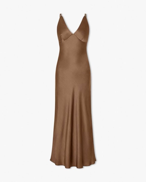 Building on the success of our previous black and sequoia versions, we’re proud to introduce this stunning ice brown addition to Magali Pascal’s summer collection. Expertly crafted from luxurious satin silk, this dress combines exceptional comfort with a beautifully flattering silhouette that enhances your natural curves. Perfectly complemented by Magali Pascal’s gold accessories for a sophisticated, elevated ensemble.