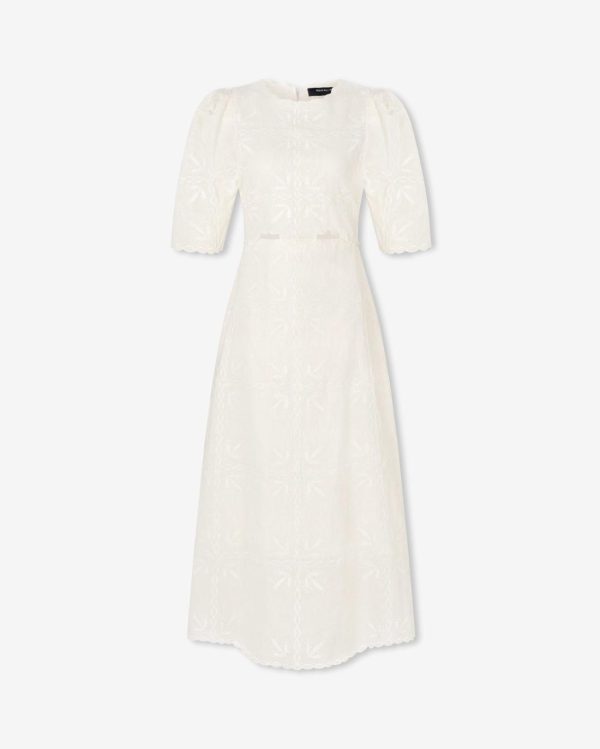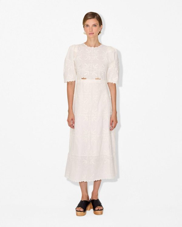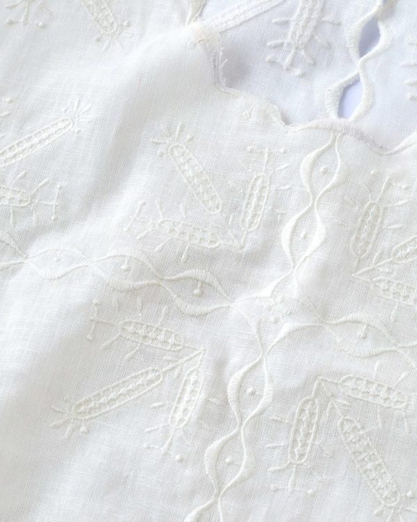 The Ludovica Embroidery Collections drawing inspiration from a vintage 1920s blouse discovered in a Parisian market. Infused with the geometric charm of square tiles and the nostalgia of traditional tablecloths, Ludovica Maxi Dress beautifully blend heritage with modern artistry.