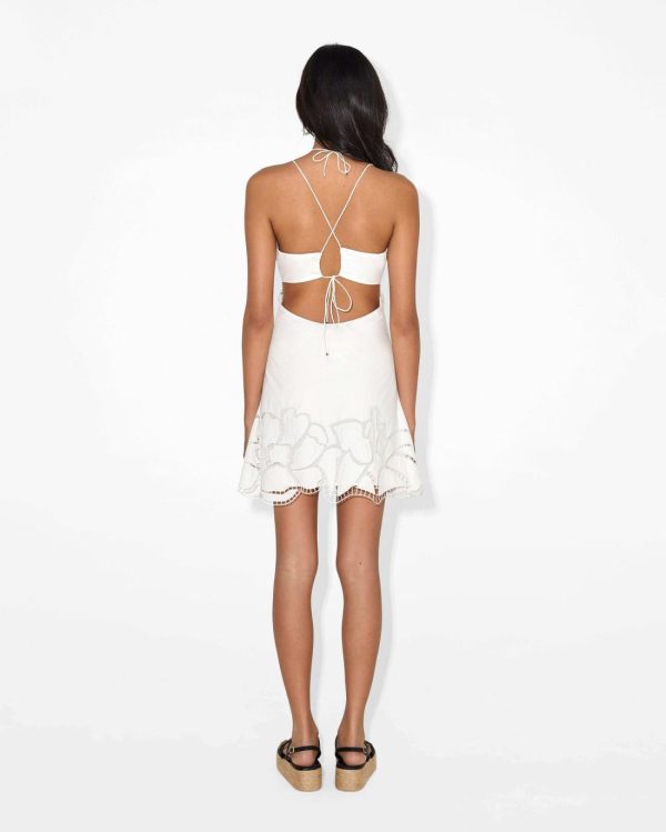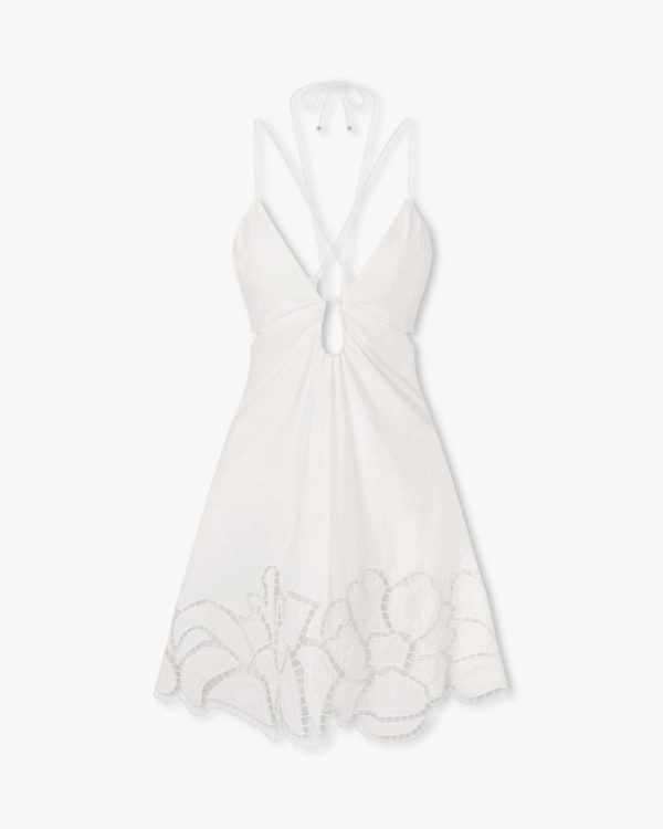 Inspired by Tropical Hibiscus Blooms – The Manili and Etta design features exquisite cut-out embroidery that creates a delicate, lace-like effect. This airy, feminine dress ensures you’ll stand out with effortless elegance.