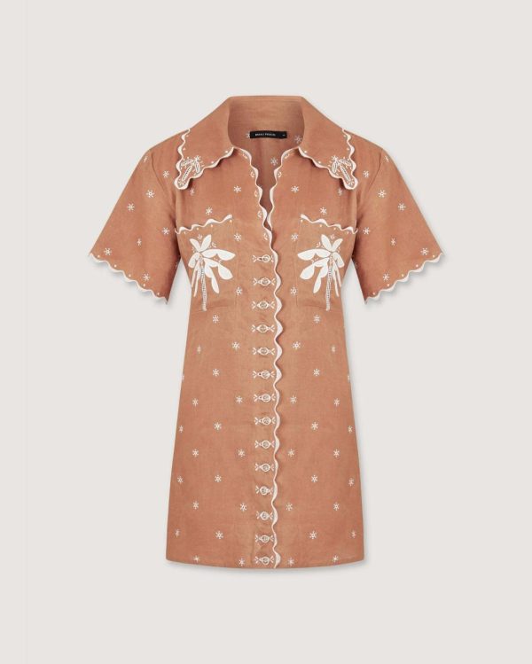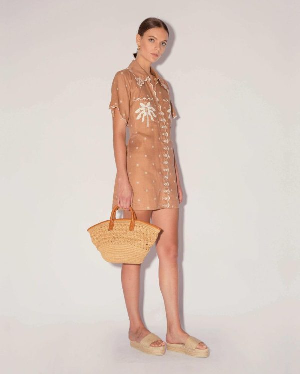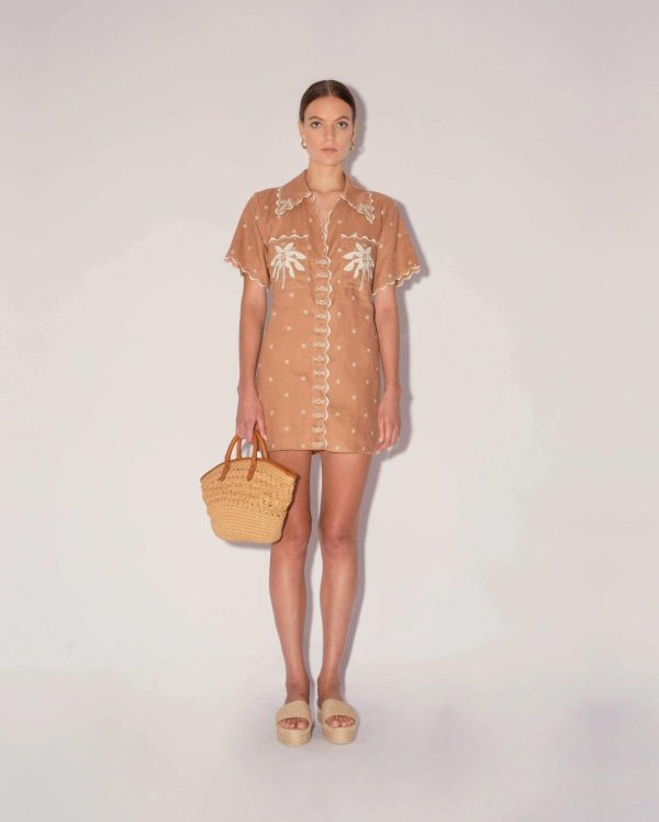 Channeling the effortless glamour of 1970s French Riviera summers, the Palmiere dress delivers both sophistication and playful charm. Designed in lightweight linen with exquisite contrast embroidery details, this versatile piece transitions seamlessly from casual beach outings to elegant outdoor dining.