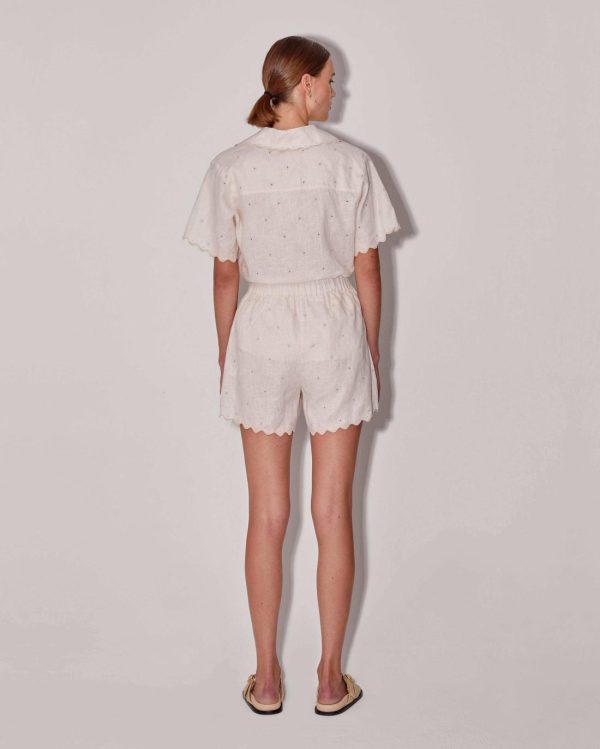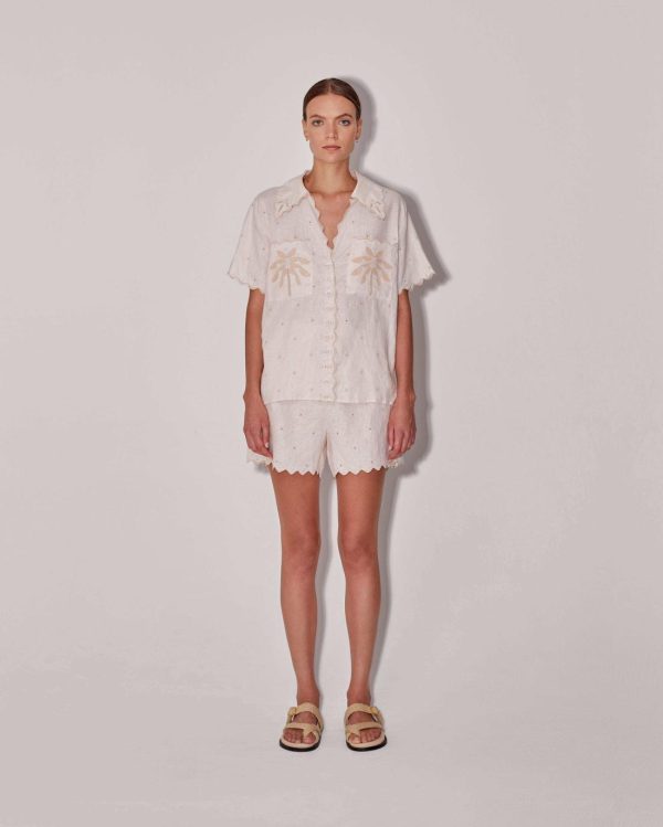 Inspired by summers on La Côte d’Azur in the 70s the Palmiere exudes fun and elegance simultaneously. Crafted from a light linen and featuring a unique contrast embroidery throughout, it can be dressed up or down, easily transitioning from leisurely beach days to dinner al fresco.