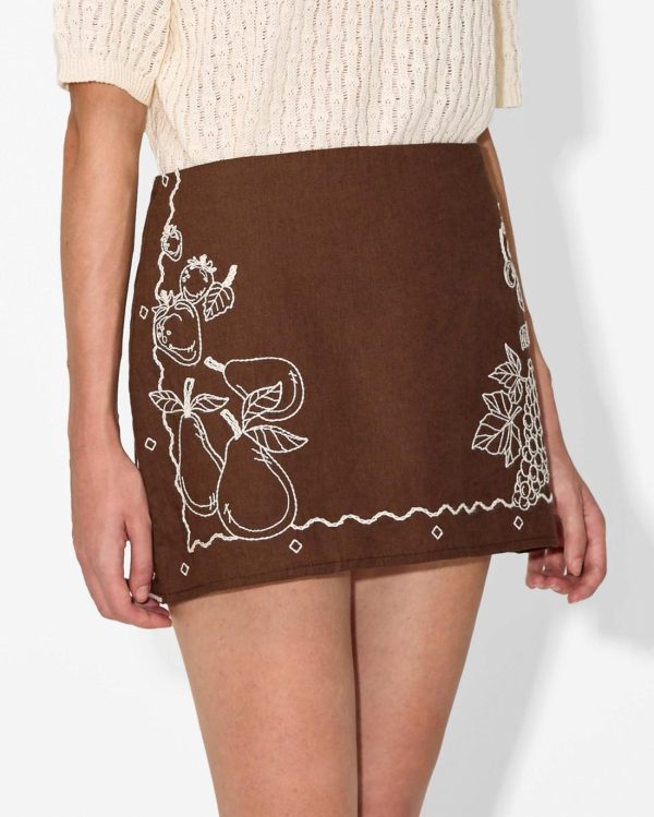 Inspired by old prints on fruit market bags, the Sunday story presents a unique chainstitch technique that gives texture to the hand-finished look of its embroidery.